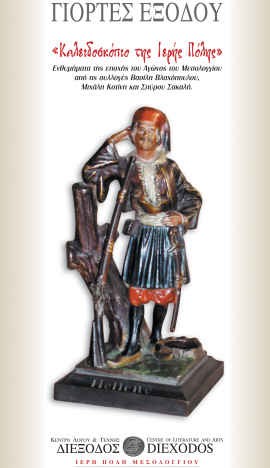 Έκθεση ενθυμημάτων του αγώνος 1821 των συλλεκτών Βασίλη Βλαχόπουλου, Μιχάλη Κοτίνη και Σπύρου Σακαλή με μιά σειρά αυθεντικών εικαστικών ενθυμημάτων , πρωτίστως της εκατονταετηρίδας 1826 - 1926 ,όπως γλυπτά, γκραβούρες, πίνακες, ιστορικά βιβλία, κεραμικά, όπλα, φορεσιές και εφημερίδες. Στην έκθεση περιλαμβάνετο και ο ιστορικός πίνακας του 1848 του κορυφαίου ζωγράφου Alexis - Joseph Perignon με τον τίτλο "'Εξοδος του Μεσολογγίου" από την συλλογή του εφοπλστή και δημάρχου Οιννουσών Ευάγγελου Αγγελάκου , ο οποίος έκανε και τα εγκαίνια της έκθεσης. Επίσης μεταξύ των εκθεμάτων περιλαμβάνοντο και τα τσαρούχια - παντόφλες του Λόρδου Βύρωνα από την Σουλιώτικη φορεσιά του, βαριά κληρονομιά των προγόνων της καθηγήτριας κυρίας Κικής Πέχα - Σπυροπούλου.