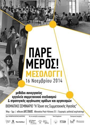Κόστος συμμετοχής: 20€ (περιλαμβάνεται συμμετοχή στην ολοήμερη εκπαίδευση, μεσημεριανό γεύμα, ψηφιακή έκδοση για την «Τέχνη της Συμμετοχικής Ηγεσίας», ψηφιακή βεβαίωση παρακολούθησης)