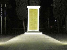 Από την Κυριακή 9 Νοεμβρίου 2008 η στήλη με το κείμενο της ιστορικής απόφασης των Ελεύθερων Πολιορκημένων για την ηρωική τους Εξοδο στην Ελευθερία κοσμεί την είσοδο του Κήπου των Ηρώων στο Μεσολόγγι.