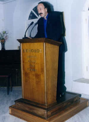H ομιλία του Μπάμπη Λέγγα που συνοδεύονταν από προβολή διαφανειών  αφορούσε την εικαστική προσέγγιση του βιβλίου δηλαδή την τέχνη της βιβλιοδεσίας.